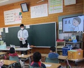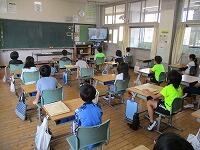 全校朝会は感染症対策として、リモートで行いました。校長先生から、目標をもって頑張ること、これまで以上に感染症対策に努めることなどのお話がありました。また、学習指導部長の先生からは、加久藤小の児童がチャイム黙想を頑張っていること、2分前着席をさらに頑張ってほしいというお話がありました。