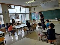 7月19日(火)に6年生が図工のワークショップに参加しました。講師に、絵本作家の広瀬克也さんをお招きし、『妖怪美術館』の読み聞かせや絵本の作り方の説明、妖怪うちわ作りを行いました。うちわに、ちらしや色紙などを貼ったり、マジックで描いたりしました。完成したうちわを持って、みんなで写真を撮りました。「楽しかった。」「もっとしたかった。」等の声が子どもたちから聞かれ、とても有意義なワークショップになったようです。
