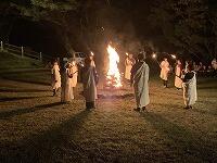 1日目の主な活動は、キーホルダー作りと追跡ハイキング、キャンプファイヤーでした。キーホルダー作りでは、御池の自然のものを使って上手につくることができました。追跡ハイキングは、友達と協力しながら課題に挑戦することができました。御池の自然を味わっていた様子でした。キャンプファイヤーでは、激しく燃えさかる炎を囲み、上江小の子どもたちと交流しました。学校紹介で、これまでに練習してきたOfficial髭男dismの「宿命」を一生懸命歌い、上江小から大きな拍手をもらいました。