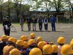 後半は、校庭に仮想の交差点を作り、自転車の乗り方や、安全確認の仕方の練習をしました。警察の方が言われたように、安全の基本は、まず、確認が大切ですね。