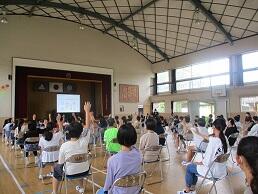 本日は、1学期前半終了日。夏休み前の全校集会を行い、校長先生からは、命を大事にして、8月29日に205名全員が元気に登校してほしいというお話がありました。また、生徒指導主事からは、良いことは進んで行い、悪いことはしない等のお話がありました。安全で有意義な楽しい夏休みにしてほしいと思います。