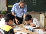 さて、この日、全校朝会ではえびの市史談会会長の亀澤矗幸様をお招きし、ご自身の戦争体験をお話いただきました。空襲や集団疎開、学徒動員について、子どもたちにもていねいに分かりやすく説明してくださり、命の尊さを改めて感じることができました。 今年は戦後70年。平和について考えるよい機会となりました。
