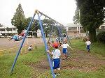 1つはサッカー、もう1つは小学校で1年生と遊ぶこと。楽しみに来校した年長さん以上に、1年生も大喜び。運動場の案内では、「あおばずく」がいる木の紹介や登り棒の実演をしてみせました。また、遊具の使い方を教えたり一緒に楽しんだりしました。運動会の新入児かけっこの練習を兼ねて、最後はかけっこをしました。
