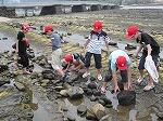 「磯の観察」では鬼の洗濯板で夢中になって生き物を探し、カニやエビ、魚、ウニ、なまこを見つけました。「キャンドルファイヤー」では鏡州小学校、本庄中学校の子どもたちとも一緒にレクリエーションで楽しみ、友愛の炎を燃やしました。
