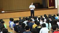 先週は小体連水泳大会がありました。練習の成果を発揮し、入賞した児童、そして、大会に選手や強化選手として参加した児童を表彰し、全校で讃えました。校長先生は、記録や入賞も素晴らしいが、どの学校より友だちを応援する態度、他校の友だちを応援する態度は加久藤小学校が一番であり、「誇らしく思う。」と話されていました。