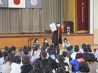 最後に、大谷選手から届いたグローブの贈呈式を行いました。子どもたちはとても楽しみにしていたようで、拍手をして喜んでいました。