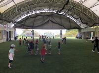 お弁当を平らげた後は 広いホールの中で思い思いの遊びを楽しみました。ボール遊び、おにごっこ、大縄とび、虫とり・・・。汗をかくほど必死で走ったり跳んだりしていました。長なわ電車が楽しそうに走り、ステージではダンスの披露もありました。