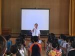 朝の全校朝会では、真っ黒に日焼けした子どもが多かったです。校長先生から、いっぱい勉強しましたか、一生懸命遊びましたかと聞かれたら、子どもたちは元気に返事をしてくれました。また、今年は1週間早く運動会が行われることに触れ、応援リーダーが夏休みも練習をしてきたこと、子どもたち全員には1学期前半に学習したことを生かし、一致団結して最高の運動会にしてほしいことなどを話されました。