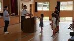 第1回漢字コンテストでは全校で27人が満点賞をとり、校長先生から賞状を授与されました。