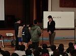 1月21日、この日は全国給食感謝週間に合わせて、本校でも給食感謝集会を実施しました。えびの市学校給食センター、栄養教諭の上﨑夢子先生に来校していただき、給食を調理する様子をお話していただきました。調理用具のしゃもじを見せていただいたり、鍋の大きさを紙で実物大で示していただいたりして、子どもたちもその大きさに驚いていました。