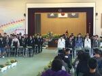 校長先生からは、式辞の中で「担任の先生が心を込めて呼ぶ名前に、大きな声でしっかりと返事をする様子、自分の夢を自信もって伝える姿に、皆さんの成長を感じ、頼もしい限りです。学校の様々な行事においては一人一人が責任を果たし、仲間を協力して成功させようとする意欲に感心しました。そして毎日の朝のボランティア活動を通して校内はもちろんのこと、学校周辺もきれいにしてくれました。これからもこの根気強さを大切に、思いやりのある中学生になってください。」と話がありました。