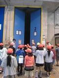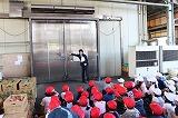 青果市場では、市場に集まってくる30種類以上の野菜や、10種類以上の果物、花などについて、ていねいに説明をしていただきました。また「冷蔵庫」の中も案内してもらい、野菜が保管されている様子も見ることができました。大きな冷蔵庫に入り,子どもたちの体もひんやりしたようです。