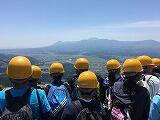 5月11日(金)、6年生は春の遠足で、矢岳高原登山に挑戦しました。あえて険しい西側の登山道からの登山に挑戦し、最初は「登れるかな?」と不安を感じていた子もいたようです。4つのグループに分かれ、えびのガイドクラブの方に先導していただきながら出発しました。先頭のグループは、「足下気をつけて~」とか「川があるよ~」などと後続のグループに状況を伝えながら進みました。急な上りや沢を横切るところなど、スリリングなところもありましたが、春風の心地よさや野鳥のさえずりにいやされながら、気持ちよく登ることができました。全員が無事、展望台までたどりつき、えびの市内の絶景を楽しむことができました。子どもたち一人一人の表情からは、「登ったぞ!」という達成感があふれていました。