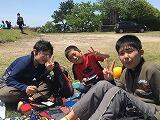 たっぷり1時間以上遊んだ後のお弁当は、本当に本当においしかったようです。愛情たっぷりのお弁当、お家の方に感謝です。