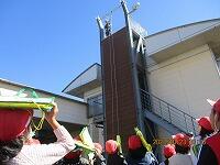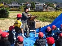 秋晴れの中、稲刈りを行いました。鎌を使っての活動でしたが、けがなく稲刈りをすることができました。