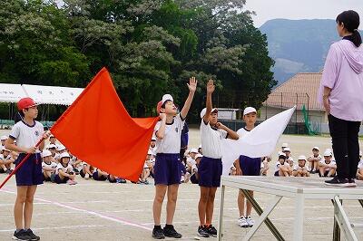 前任の都原校長先生にも褒めていただき、手を振ってうれしそうな子どもたちでした。