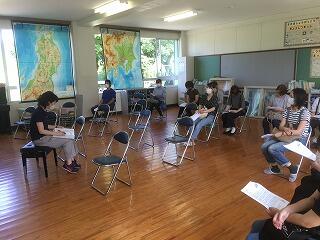退所式です。代表児童が発表したり、先生方のお話を聞いたりして、2日間の活動をふり返ります。