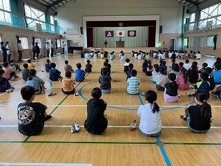 2校時に全校集会が行われ、先生方から1学期前半の子ども達のようすや、夏休みの学習、生活、健康についてのお話がありました。子ども達は最後まできちんとした態度で聞いていました。