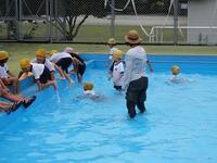 水難事故防止のため、真幸小学校では、毎年、着衣泳の指導を行っています。