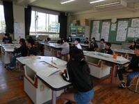 2校時が国語、3校時が算数でした。国語は、自分の考えを書く問題や漢字など様々な問い方ででていました。算数も同様に、解き方を表現したり計算をしたりする問題でした。