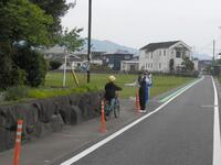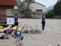今日は、えびの警察署と交通安全協会の皆さんにおいでいただき、交通安全教室を開催しました。高学年・中学年は自転車の乗り方、低学年は道路での歩行の仕方を教えていただきました。