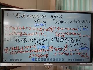 地震や津浪について調べる班、森林の働きについて調べる班など、教科書やインターネットの資料などを活用してまとめていました。