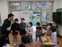1年生が作ったおもちゃの説明をして、6年生に遊んでもらいました。これまで、6年生が1年生に何かしてあげることは多かったですが、1年生が6年生にこれまでの感謝を込めて、楽しんでもらおうと企画したものです。
