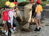 地区割りごとに子どもたちは、一生懸命に清掃活動に取り組みました。活動では、子どもたちの安全確保のために、「真幸まちづくり協議会」のみなさんにご協力をお願いしました。