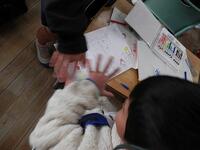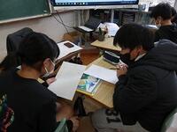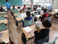 教室では、先生といっしょに教科書を読んでいました。