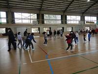 長縄を全員で2分間のうちに何回跳べるかチャレンジしています。