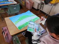 3年生の図工の時間…今日は、「霧島山」を描いていました。