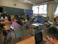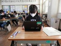 子どもたちは、タブレットを使って文字入力をしています。総合的な学習の時間で使っています。