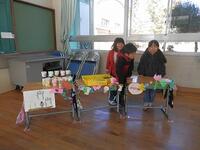 1年生は、こども園の皆さんに楽しんでもらうためのお店を開く準備をしています。「魚釣り」「こままわし」「ボーリング」「的当て」の準備が整ってきました。