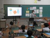 今日の3校時、1年生は英語活動の時間でした。リズムに合わせて、Clap your hands!という先生の声が聞こえます。子どもたちは、上手に手をたたきます。