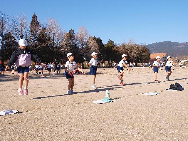 1月の真幸タイムでは、全校でなわとびの練習をしています。短なわでは、それぞれの技にチャレンジし、長縄では、8の字跳びをみんなで練習しています。みんな寒さに負けず、体を鍛えています。