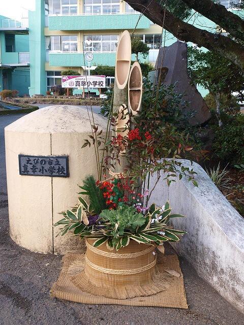 12月20日(月)に門松が完成しました。PTA会長や副会長が来校され、竹や縄を上手に使って、色鮮やかな門松が完成です。真幸小学校も、無事に年越しができそうです。本当にありがとうございました。
