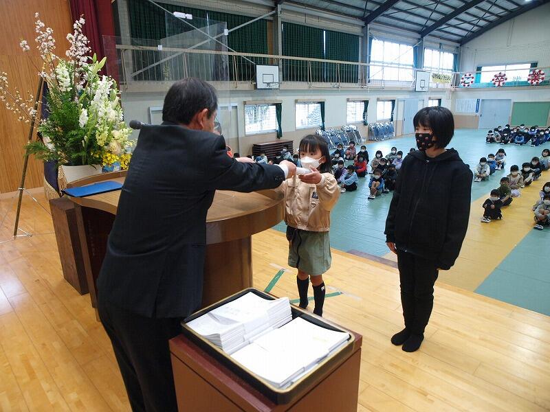学級では担任の先生から通知表を受け取り、一年間のがんばりを称えられました。春休みが明けたら進級です。子ども達のさらなる成長を心より願っています。