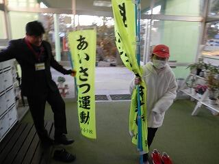 今日の朝から運営委員会の子ども達とPTA生徒指導部の方によるあいさつ運動が始まりました。