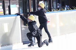 初めにインストラクターの方から、立ち方や進み方、転び方、立ち上がり方など基本の動作を教えていただきました。最初は手すりから手が離せなかった子どもも、時間が経つにつれて少しずつ慣れ、自分の力で滑ることができるようになりました。中には、しばらく進んでは転び、進んでは転び、を繰り返す子どももいましたが、転んだ分だけ上達が早かったです。