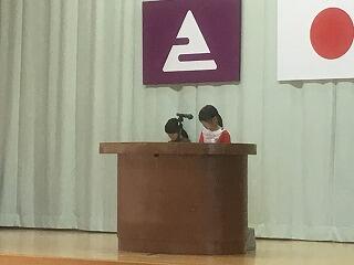 1年生と4年生の代表児童が、2学期にがんばりたいことについての作文発表をしました。