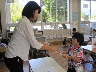 1年生のみなさんは、入学して初めて「あゆみ」をもらいました。2学期もがんばれ、1年生!!