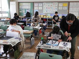書き初めらしく、題材は「正月」です。みんなバランスの良い上手な字を書いていました。