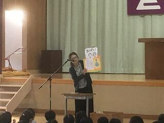 全校児童が集い、ベルマーク委員会による読み聞かせが行われました。とてもわかりやすく、子ども達の人権意識を高めるすばらしい物語でした。相手を思いやり、大切にしていこうという心をもって生活できる子どもに育ってほしいです。