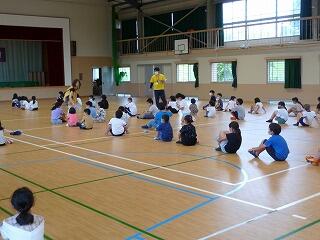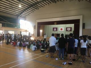 3校時に全校集会が開かれ、校長先生が「自分の命は自分でしっかり守る」といったお話をしました。子ども達はきちんと先生方の話に耳を傾けています。