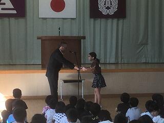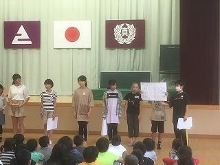 3年生と6年生の代表児童による作文発表も行われました。1学期をふり返ってがんばったことや2学期にがんばりたいことなどを立派に発表しました。