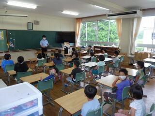 今年は7月からプール開きとなります。子ども達はとても楽しみにしているようです。職員は水泳指導に行うにあたり、子どもの安全を確保するために様々な研修を行います。6月5日(金)は消防士の方々を招いて救急救命法の研修を行いました。水泳の学習がある日は家庭で朝の健康チェックカードを記入することになっています。ご協力をお願いします。