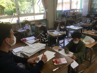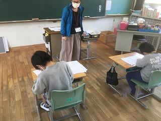 教室では、感染予防をしながら、家庭で子ども達が懸命に取り組んだ宿題のチェックをしたり、やり直しや新たな課題に取り組ませたりしました。また、図書室の本の返却・貸出しも行いました。読み聞かせやリズム遊びなどをしている学級もあり、楽しい時間を過ごすことができました。