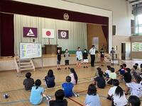 「元気爆発 楽しい学校 協力し合い 安全な学校」です。また、7月の生活目標「挨拶、返事をしっかりしよう」についても劇仕立てでわかりやすくみんなにお知らせすることもできました。
