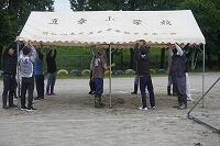 はじめに、運動会に向けてテントを立てました。そのあと、運動場や校舎まわりの草刈りや花壇の草取りなどを行いました。短い時間でしたが、効率的に作業をしていただき、校内がとてもきれいになりました。