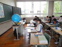 地図を広げていました。先生が、「大西洋はどこ?指さして」「インド洋は?」「ユーラシア大陸は?」と投げかけていました。スムーズに指を動かす子ども、ちょっとまごまごしている子どもと様々でした。